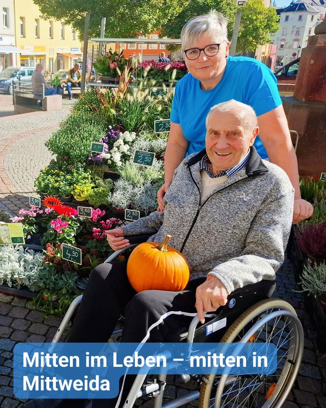 Mal wieder etwas anderes sehen, hören oder riechen das können unsere Bewohner bei unseren regelmäßigen Marktausflügen in Mittweida. So wie heute, bei schönstem Wetter, machten wir uns auf den ca 1,5 km langen Weg in unsere tolle Innenstadt. Immer wieder trifft man bekannte Gesichter und es finden kurze Gespräche statt. Oft werden wir auch von Fremden angesprochen, die sich freuen, was wir unseren Bewohnern alles ermöglichen. Heute wurden wir sogar mit zwei tollen Blumensträußen belohnt, die uns spontan von der netten Verkäuferin der Gärtnerei Köhler überreicht wurden. So sind diese Ausflüge nicht nur eine wertvolle Bereicherung für unsere Bewohner sondern auch immer wieder schöne, wertschätzende Erfahrungen für unsere Teamgeister.