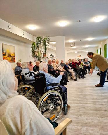 In unserem grünen Salon versammeln sich die Senioren zu einer gemütlichen Runde. Die Stimmung ist entspannt und voller Vorfreude.
